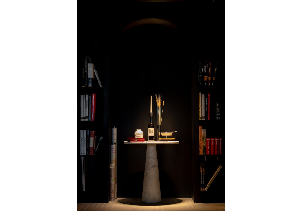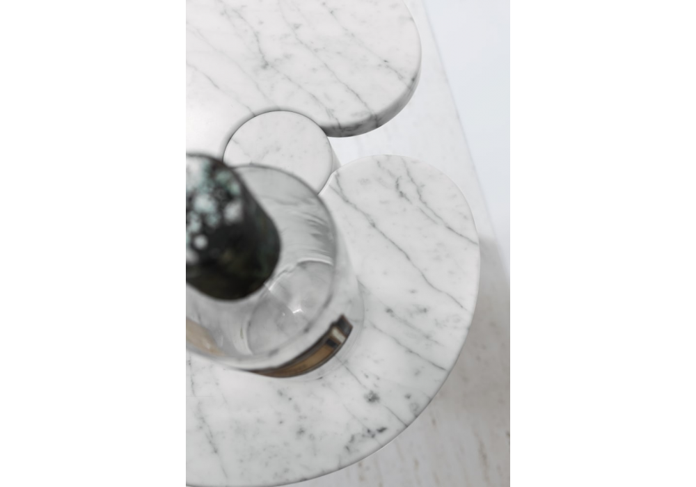 Eros conçue par Angelo Mangiarotti pour Agapecasa est une table d'appoint en marbre en différentes finitions. Elle est caractérisée par un ou plusieurs supports coniques encastrés dans le plateau en fonction de la forme. Disponible en différents modèles.
