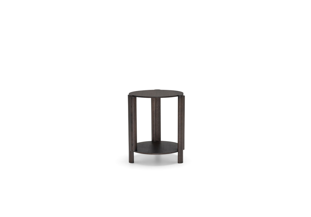 Maylis conçue par Christophe Delcourt pour Molteni&C est une table d'appoint au plateau rond en chêne massif, qui apporte richesse et contraste à l'ensemble hexagonal et multiforme de la même collection.