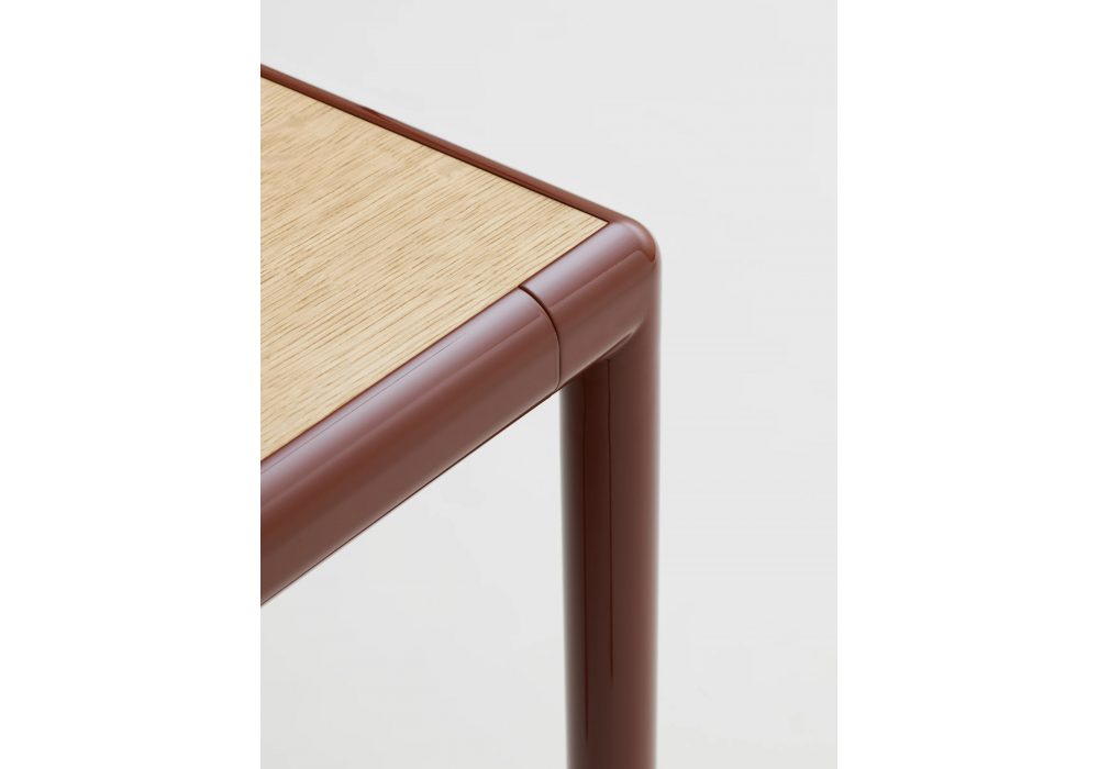 Passage, conçue par Ronan Bouroullec pour Kettal, est une table basse avec une structure en métal, finition brillante ou texturée. Le plateau est plaqué chêne.
