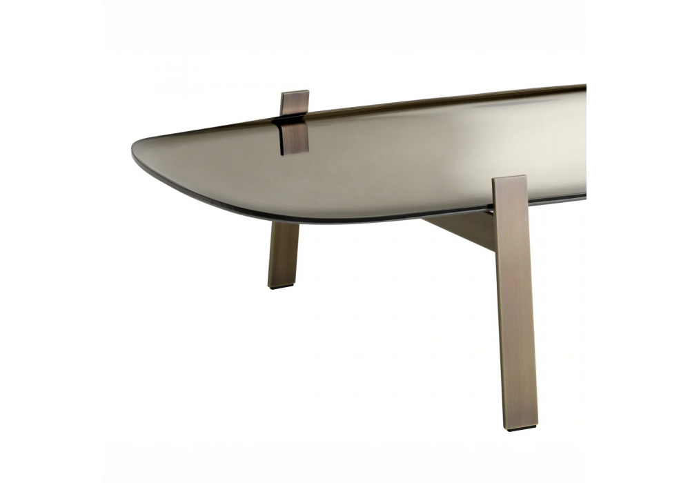 The 5 O'Clock Lie conçue par Philippe Starck pour Glas Italia est une table basse en cristal de 8 mm, courbée sur tout le périmètre et argentée manuellement, les pieds sont en acier. Plateau et base assortis, les pieds sont en finition nickel pour le plateau extralight et en bronze pour le plateau bronze. Disponible en différentes finitions et dimensions.