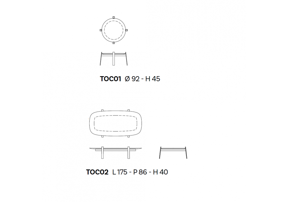 | Dimensions | Ø 92 x H 45 cm; 175 x 86 x H 40 cm. |