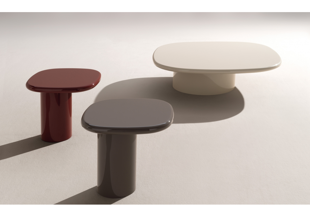 Homan conçue par Matteo Thun & Antonio Rodriguez pour Désirée est une table d'appoint avec une structure en métal et un plateau en bois MDF dans différentes finitions laquées brillantes.
