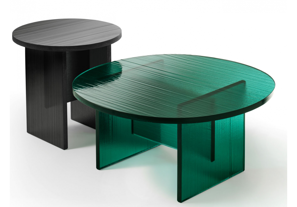 Gliss conçue par Ceriani Szostak pour Fiam est une table basse en verre DV disponible en différentes finitions.