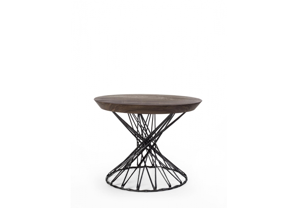 Web Small conçue par Authentic Design pour Riva 1920 est une table basse réalisée avec un plateau rond en bois massif avec des lattes collées associé à une base en fibre de carbone tressée. Disponible en différentes finitions et dimensions.