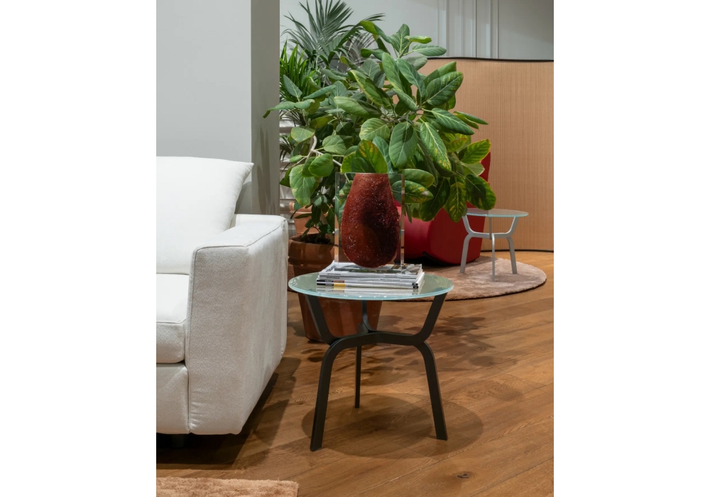 Roots conçue par Arik Levy pour Baleri Italia est une table d'appoint avec une structure en aluminium, peinte avec des poudres époxy dans les couleurs spécifiées. Structure à connexion magnétique pouvant être entièrement démontée. Plateau disponible en verre trempé clair, translucide sablé à l’acide ou fumé sablé à l’acide (épaisseur 10 mm). Éléments d’extrémité en feutre de laine noire. Disponible en 2 dimensions.