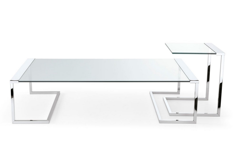 Sir T32 conçue par Pierangelo Gallotti por Gallotti&Radice est une table basse avec 10mm transparent ou fumé « grigio Italia » gâché en verre. Pièces en métal chromés. Pièces métalliques en laiton brillant ou satiné, sur demande