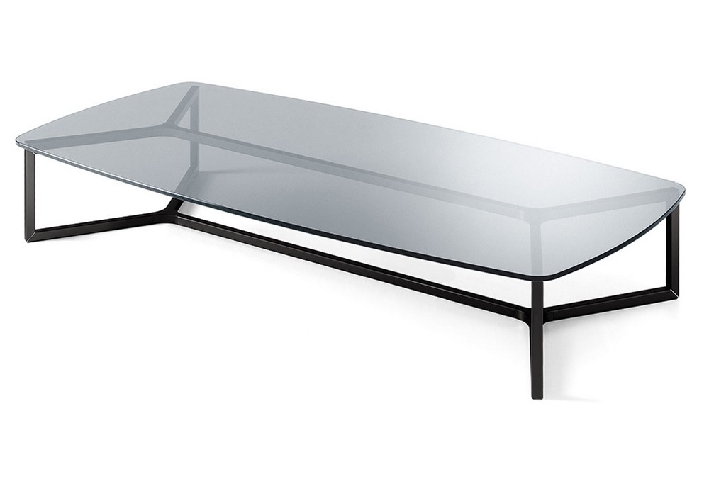 Raj 6 conçue par Ricardo Bello Dias pour Gallotti&Radice est une table basse avec plateau en verre “grigio Italia” fumé trempé de 10mm d’épaisseur et structure en métal bruni. Disponible avec plateau en verre transparent trempé de 10mm d’épaisseur et structure en acier inox brillant.