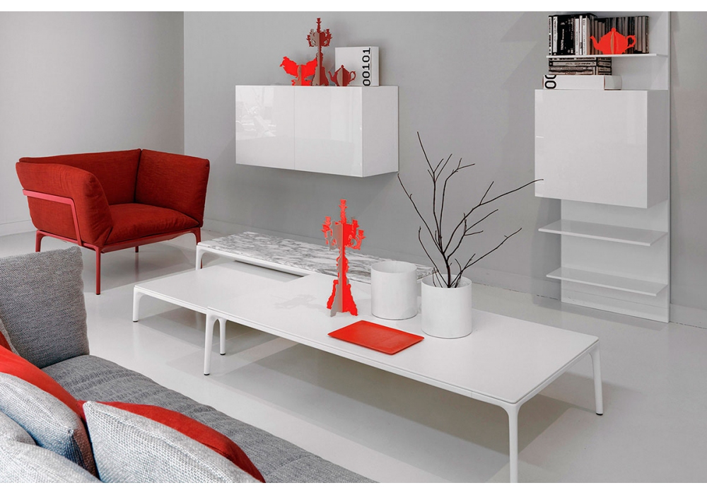 Yale Low Table conçue par Jean Marie Massaud pour MDF Italia est une table basse avec structure en aluminium extrudé et pieds moulés sous pression en aluminium peint mat en blanc ou noir plomb. Le plateau est disponible en différentes finitions et matériaux. La table basse Yale est disponible en différentes tailles.