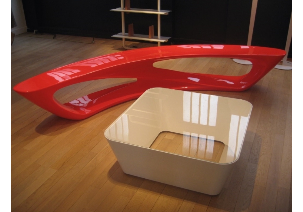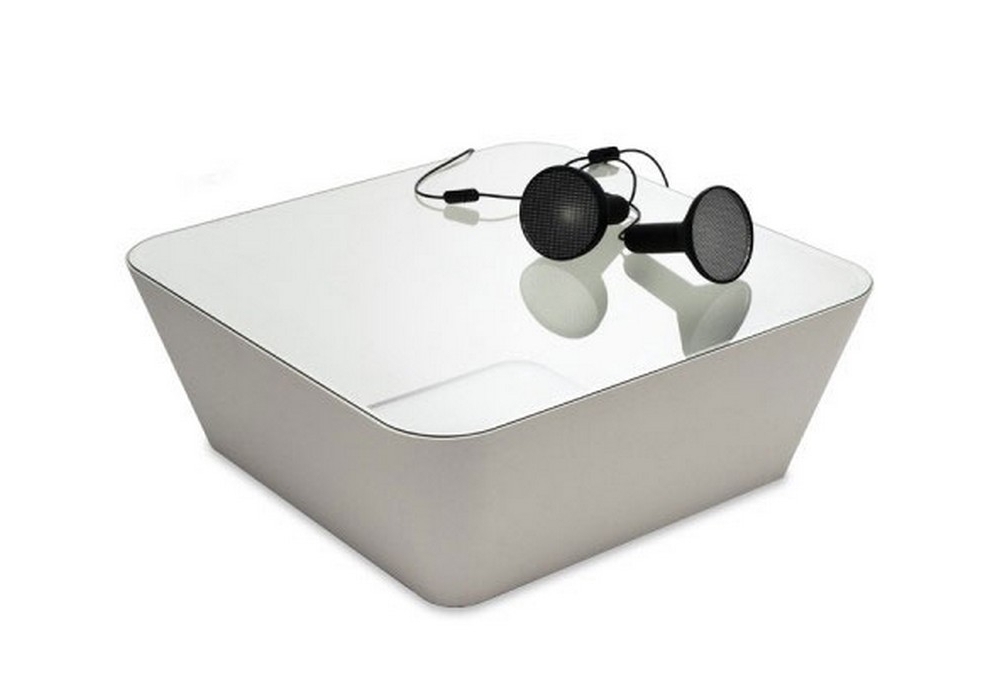 Zero-In conçue par Barber & Osgerby pour Established & Sons est une table basse avec structure en polyester moulée en une seule pièce sans aucune soudure recouverte d'un verre transparent de 4 mm. Disponible en différentes finitions.
