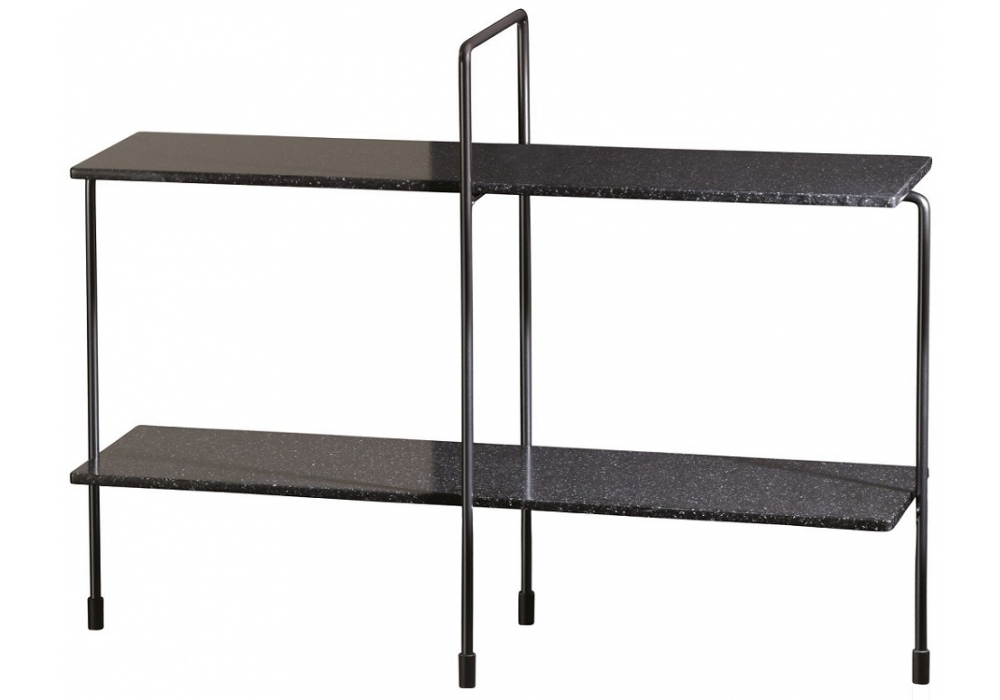 Traffic conçue par Konstantin Grcic pour Magis est une table basse avec structure en acier peint, plateau en pierre acrylique à surface lisse ou en chêne plaqué naturel ou noir.