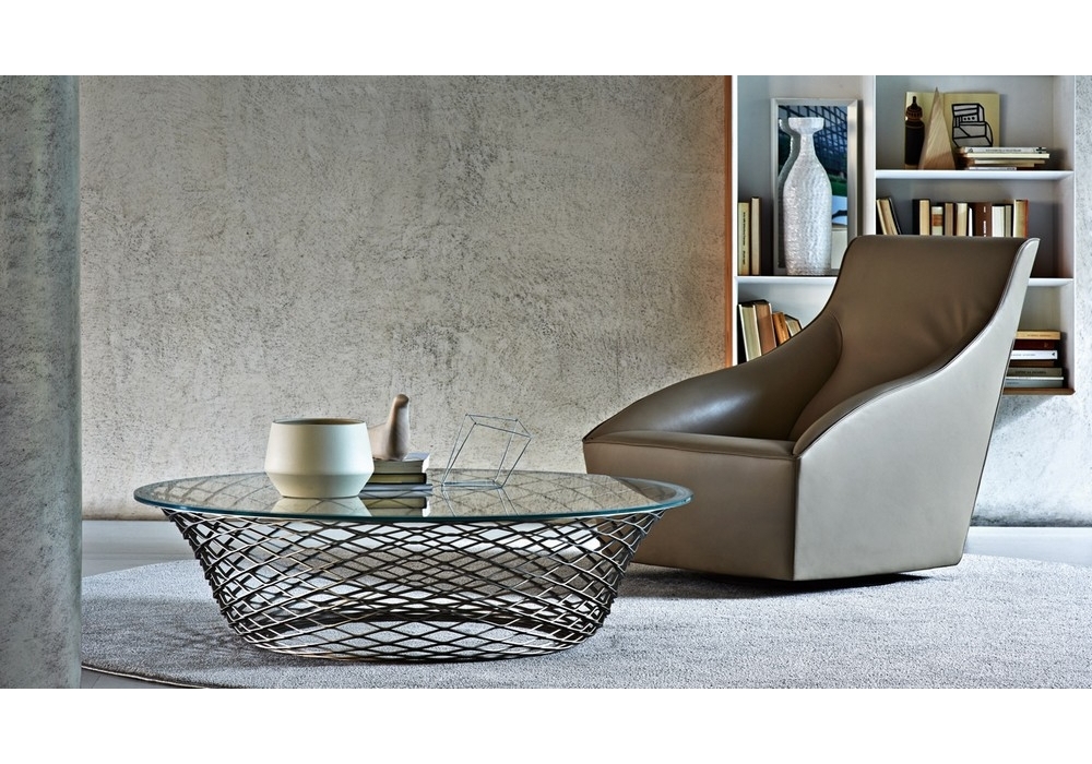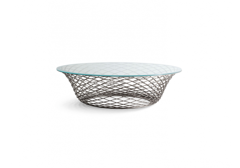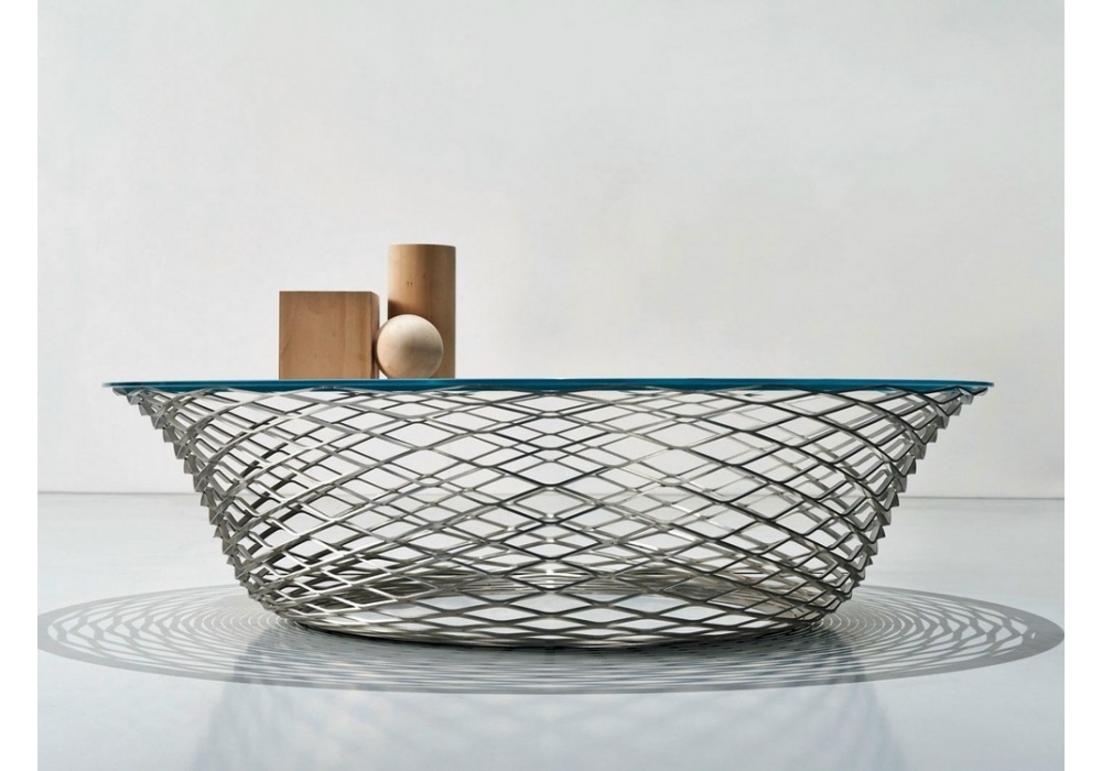 Teso conçue par Foster + Partners pour Molteni&C est une table basse avec plateau en verre extra-clair et structure en métal. La structure porteuse est obtenue par découpe et repassage d'une seule feuille d'acier dans un moule.
