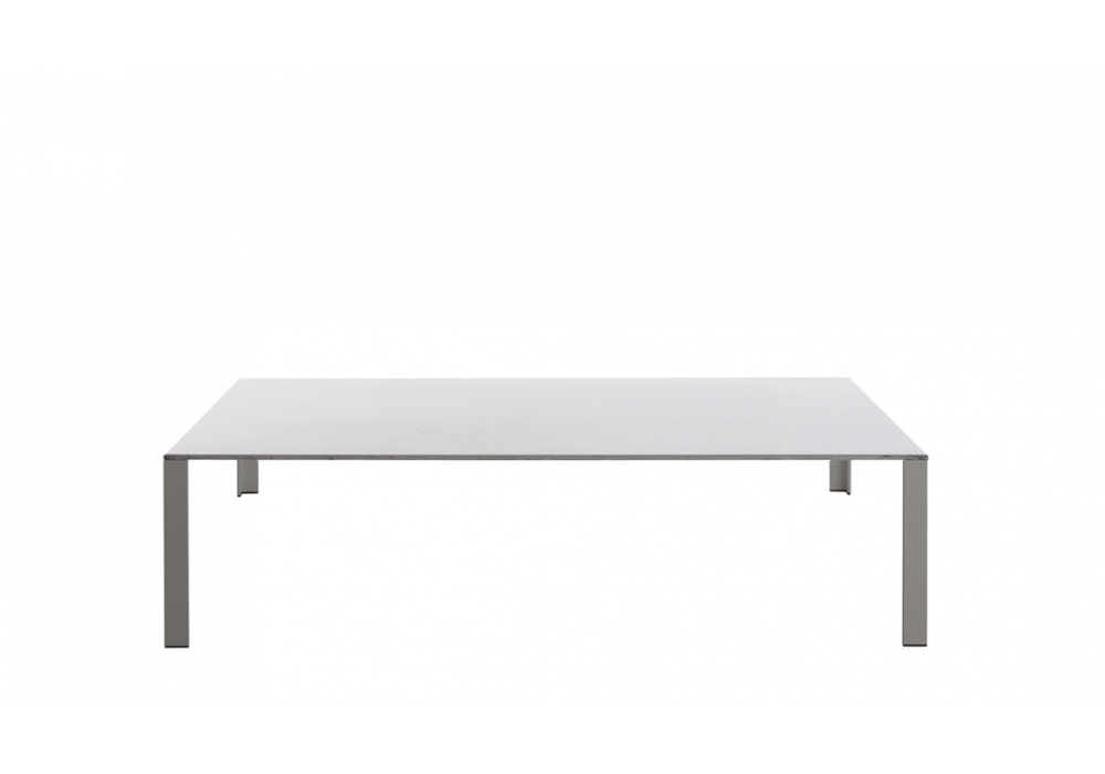 LessLess conçue par Jean Nouvel pour Molteni&C est une table basse rectangulaire en aluminium. Les quatre pieds sont en forme de L, avec des ailes de 45 mm et une épaisseur de 8 mm. Le profil extérieur du plateau horizontal est très fin et la rigidité est obtenue en pliant la feuille d'aluminium selon des plans inclinés. Disponible en différentes finitions.