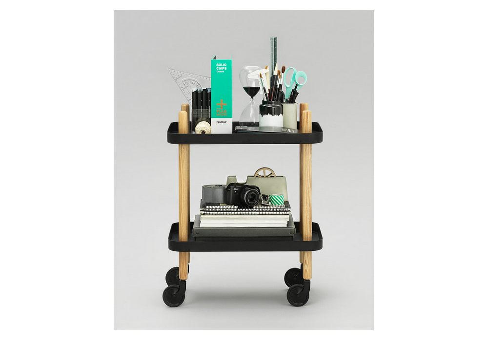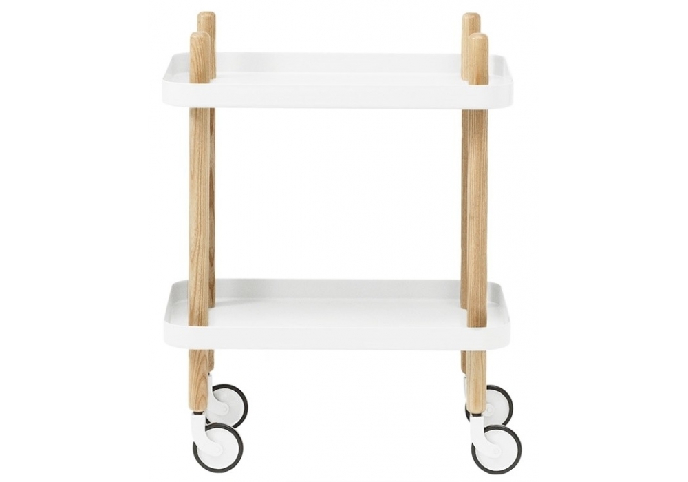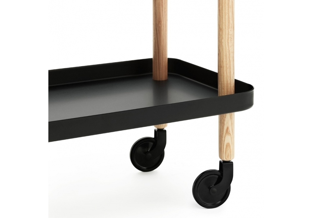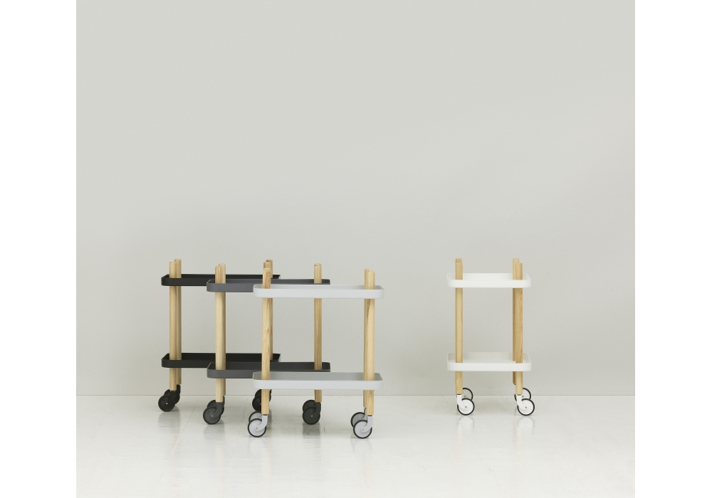 Block, conçue par Simon Legald pour Normann Copenhagen est une table basse, de forme quadrangulaire ou circulaire selon le modèle choisi, construite en bois de chêne et en acier. la base se compose de quatre roues en métal, avec une rotation à 360 ° pour faciliter le mouvement d'une pièce à l'autre. Block est disponible en deux modèles différents, quadrangulaire ou circulaire et différentes finitions.