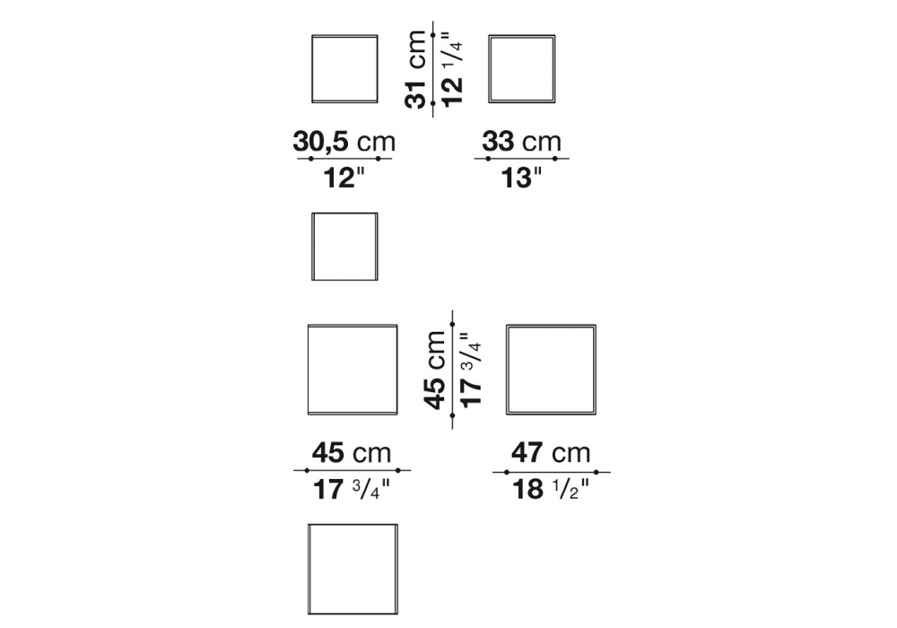 | Dimensions | 30.5 x 33 x H 31 cm; 45 x 47 x H 45 cm |