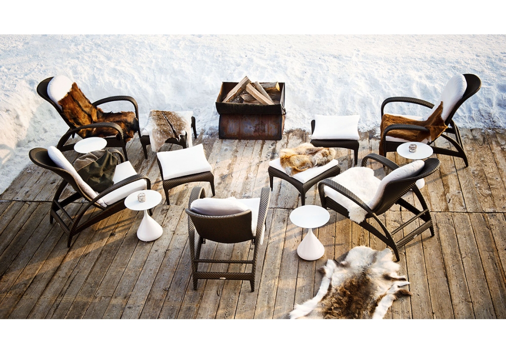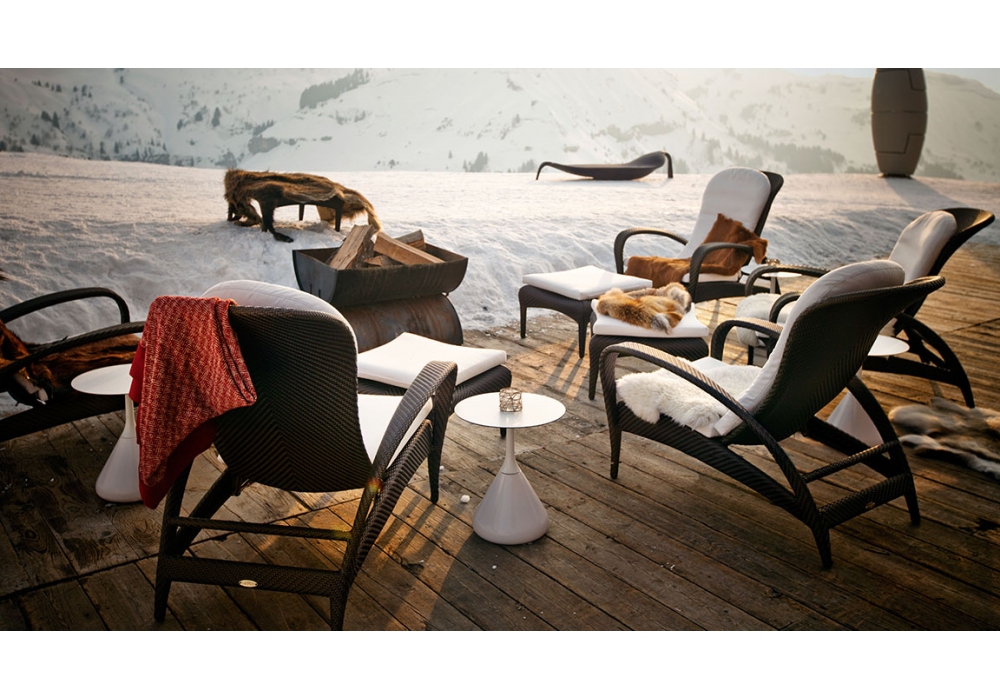 Satellite conçu par Jean-Marie Massaud pour Dedon est une table d'appoint en HPL et piètement en aluminium thermolaqué. Disponible en finitions Blanc ou Vulcano