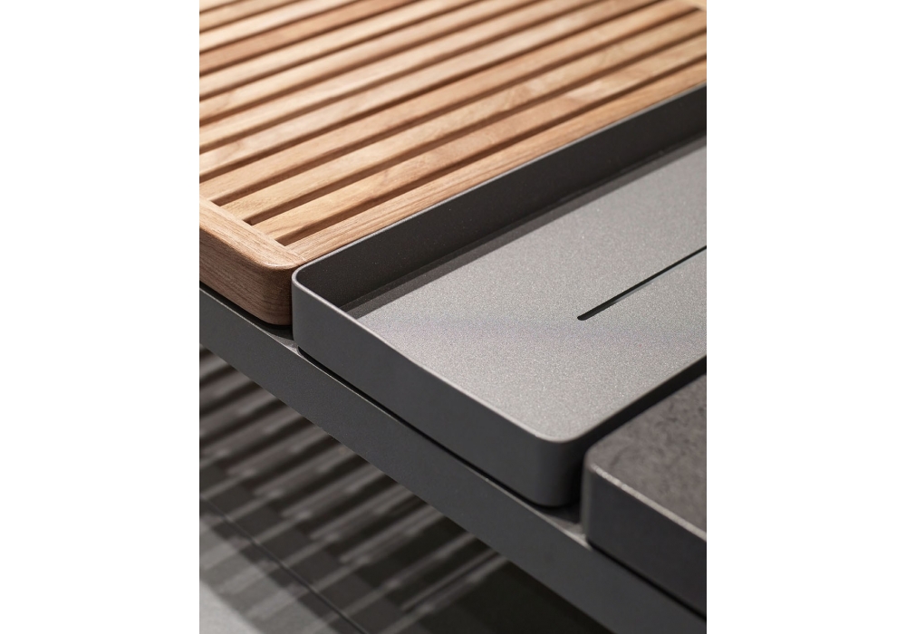 Designed by Henrik Pedersen for Gloster, the Grid Coffee Table injects sophistication and elegance into your garden. Taking inspiration from refined scandic design and the laid back style of Italian garden furniture, the Grid Coffee Table is part of a modular collection which channels contemporary style outdoors. Great for coffee and cakes, the end of the table features a black marble feature panel and aluminium tray. Practical as well as beautiful, the robust square frame is electrostatically applied making it scratch and weather resistant.