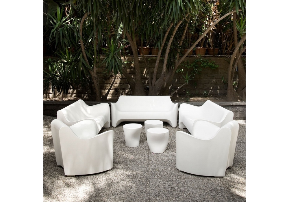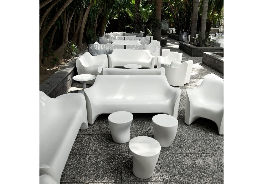 Tokyo-pop conçue par Tokujin Yoshioka pour Driade est une table basse en polyéthylène. Disponible en deux finitions. Convient également pour une utilisation en extérieur.