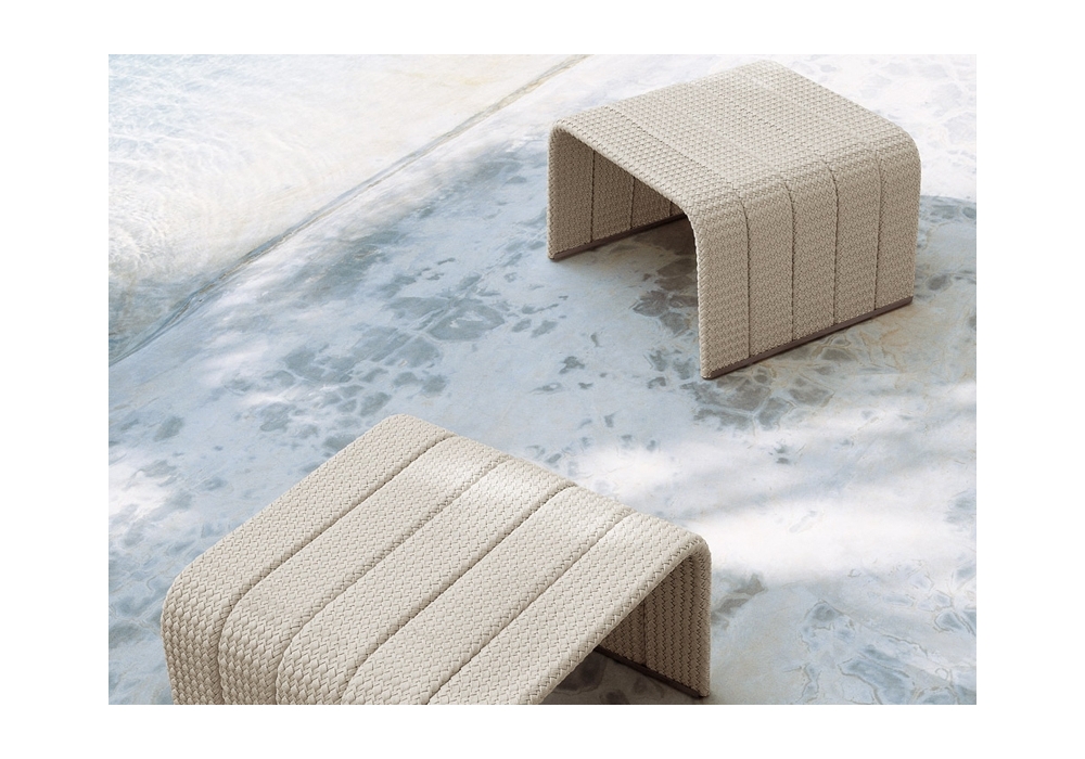 Frame designed by Francesco Rota for Paola Lenti is an outdoor side table available in different types. The side table's aluminium structural elements are upholstered with Aquatech Treccia 95 fabric, which is also available in multiple finishes.