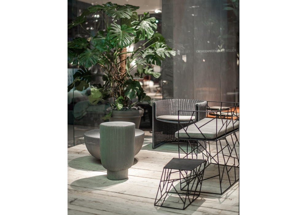 Craklé signé par Antonino Sciortino pour Baxter est une collection de tables pour une utilisation en extérieur. Structure en métal galvanisé peint en noir mat.