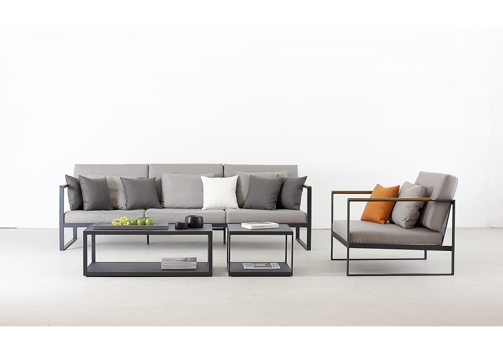 Garden Easy conçue par Broberg & Ridderstråle pour Röshults est une table basse en acier inoxydable finition anthracite. Disponible en trois dimensions.
