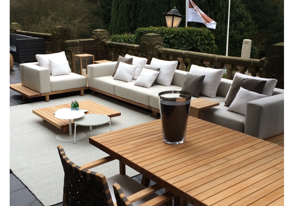 Vis à Vis signè par Piergiorgio Cazzaniga pour Tribù est une table basse en teck. Il est disponible dans différentes dimensions.