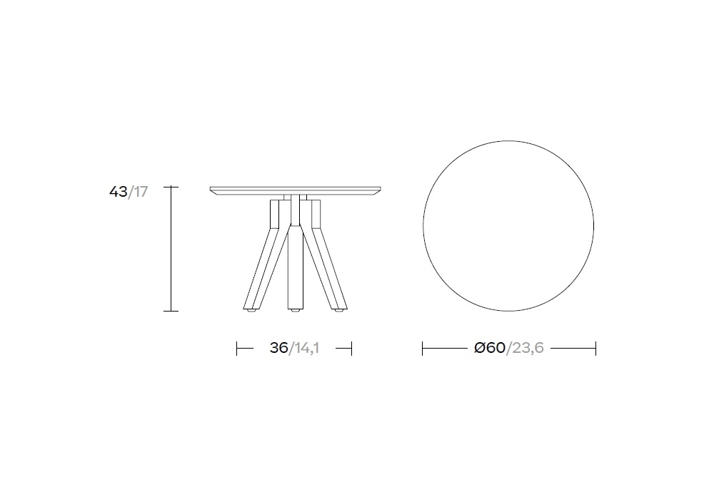 Vieques conçue par Patricia Urquiola pour Kettal est une table basse avec plateau circulaire et base à trois pieds en aluminium peint. Le plateau est en aluminium peint, en marbre ou en bois de teck naturel. Vieques est disponible en différentes finitions.