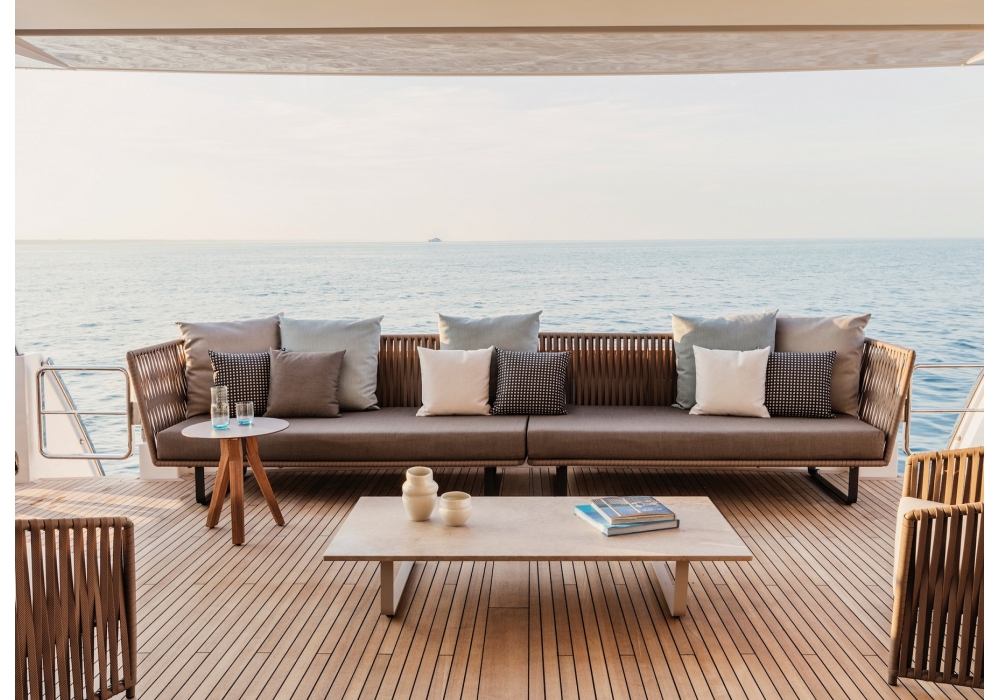 Bitta conçue par Rodolfo Dordoni pour Kettal est une table basse avec une structure portante en aluminium peint et un plateau quadrangulaire en aluminium, bois de teck, travertin ou marbre. Bitta est disponible en différentes finitions.