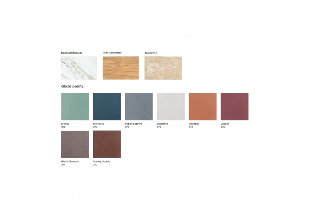 | Matériau de construction | Alluminio; Glaze, Teak, Pietra Opaca, Travertino, Marmo. |