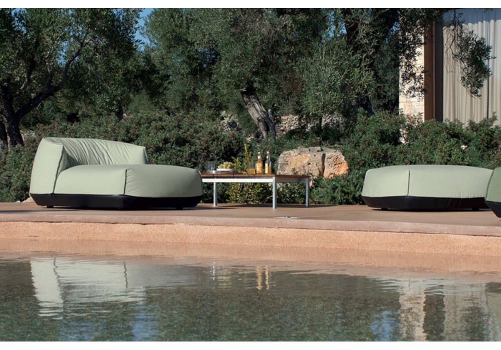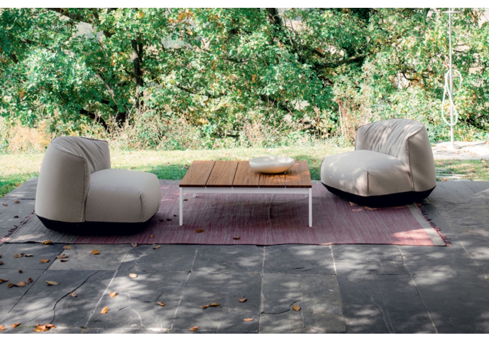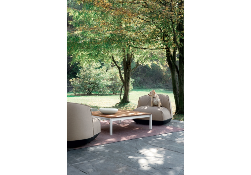 Be-Easy Slatted conçue par Bluezone pour Kristalia est une table basse d'extérieur avec pieds en acier et plateau à lattes en aluminium ou en teck. Disponible en différentes finitions et dimensions.