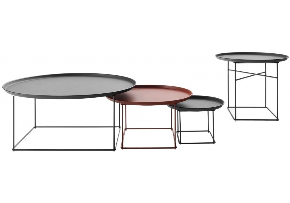 Fat-Fat conçue par Patricia Urquiola pour B&B Italia Outdoor est une table basse avec structure et plateau en acier peint dans différentes finitions.
