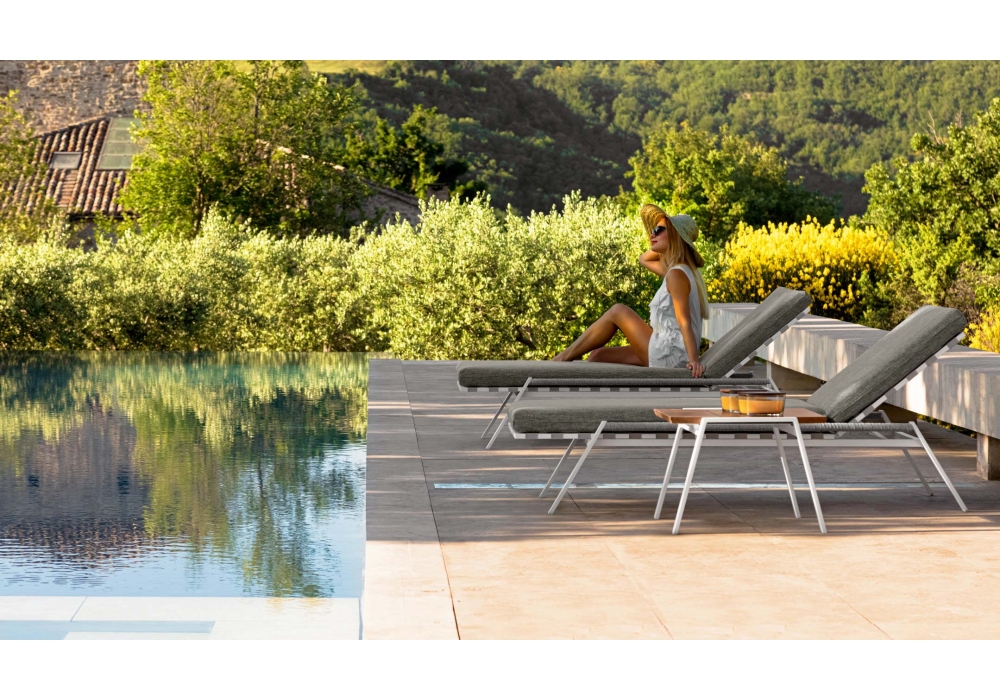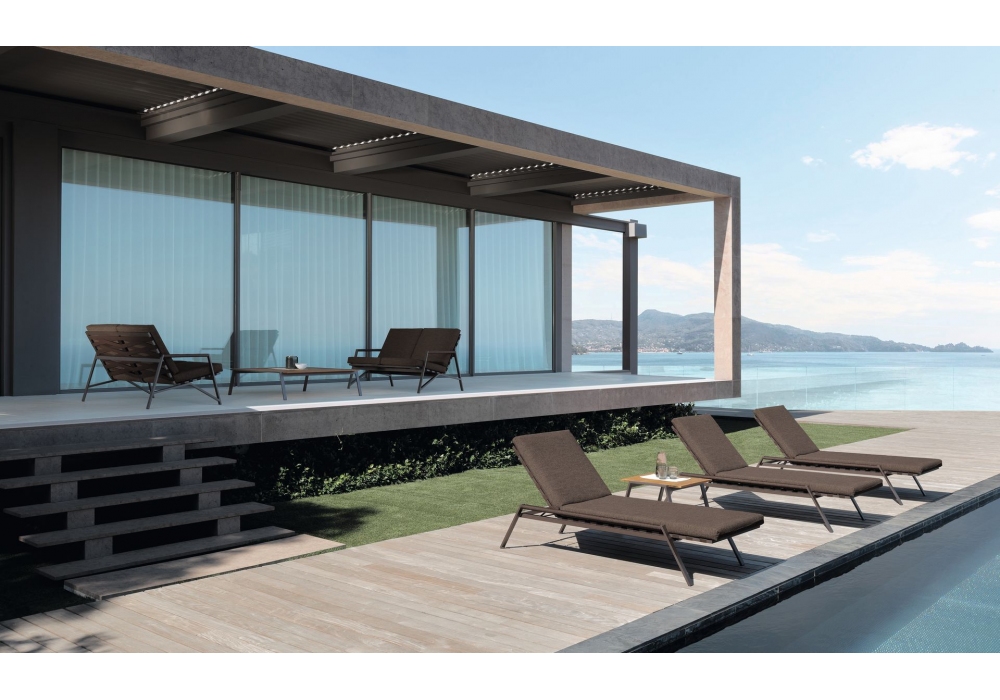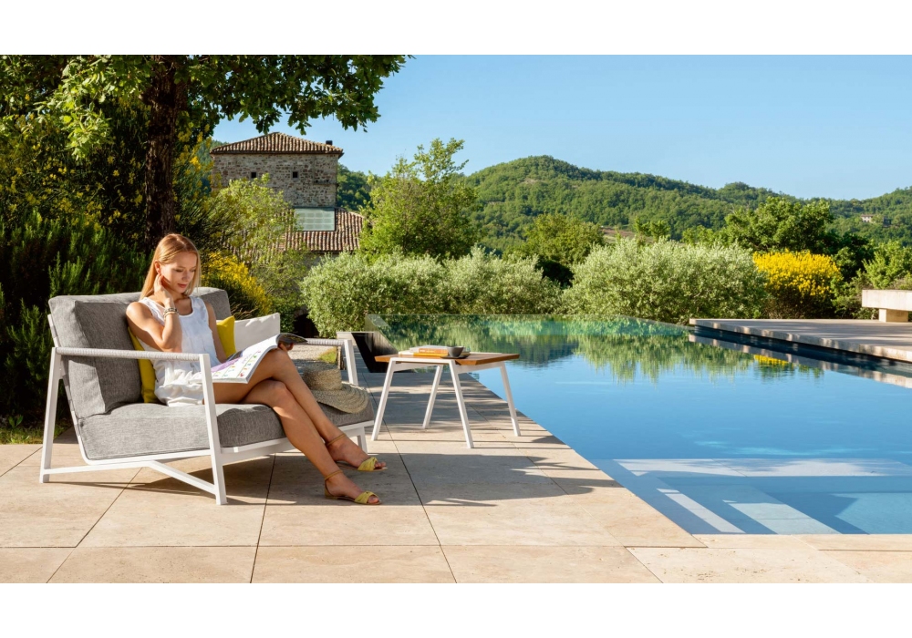 Cottage est une table d'appoint par Ramón Esteve pour Talenti, caractérisée par une structure en aluminium thermolaqué disponible en trois variantes: blanc, graphite, mokka avec plateau en iroko.