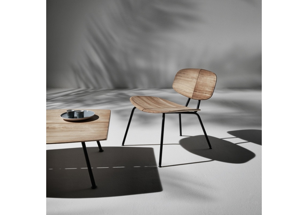 Agave conçue par Mattia Albicini pour Ethimo est une table basse avec structure en métal peint et plateau en bois de teck naturel. Agave est disponible en différentes tailles et versions.