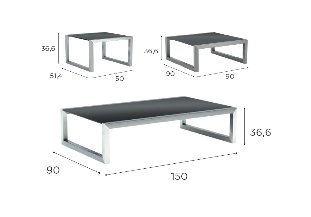 | Dimensions | 50 x 51,4 x H 36,6 cm; 90 x 90 x H 36,6 cm; 150 x 90 x H 36,6 cm. |