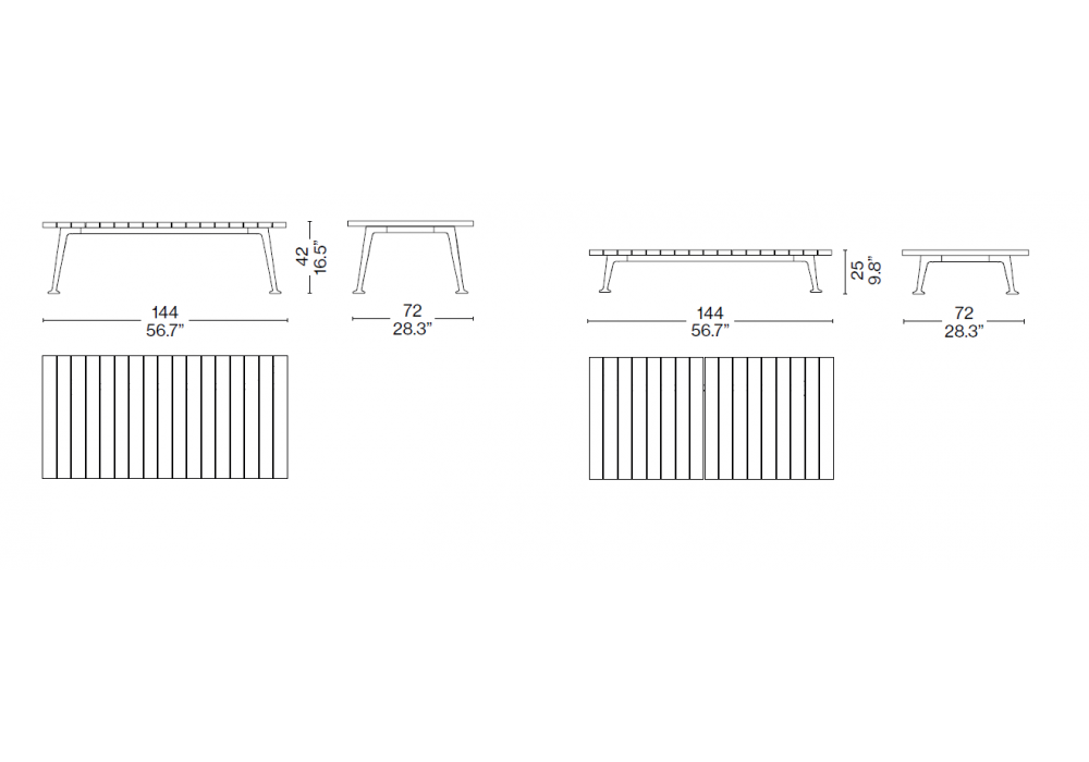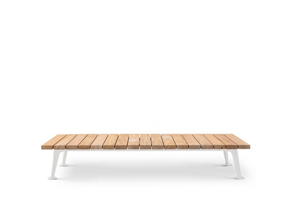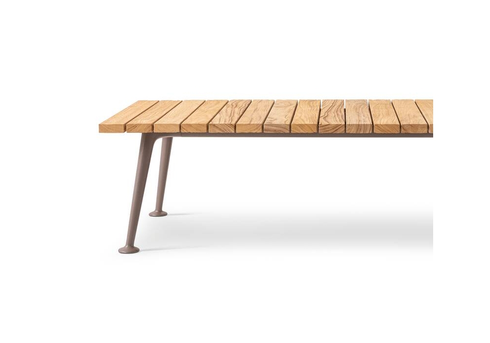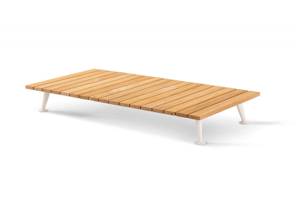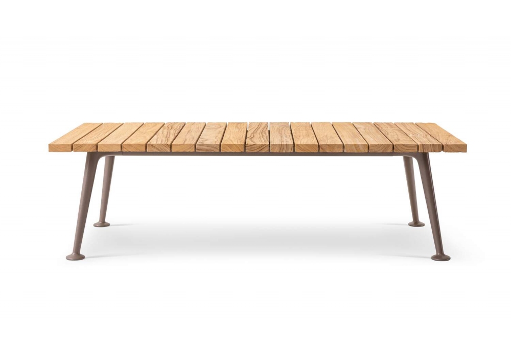 Fenc-e-Nature Cassina conçue par Patricia Urquiola pour Cassina est une table basse avec structure en métal peint et plateau en bois de teck. Aussi disponible en 2 hauteurs.