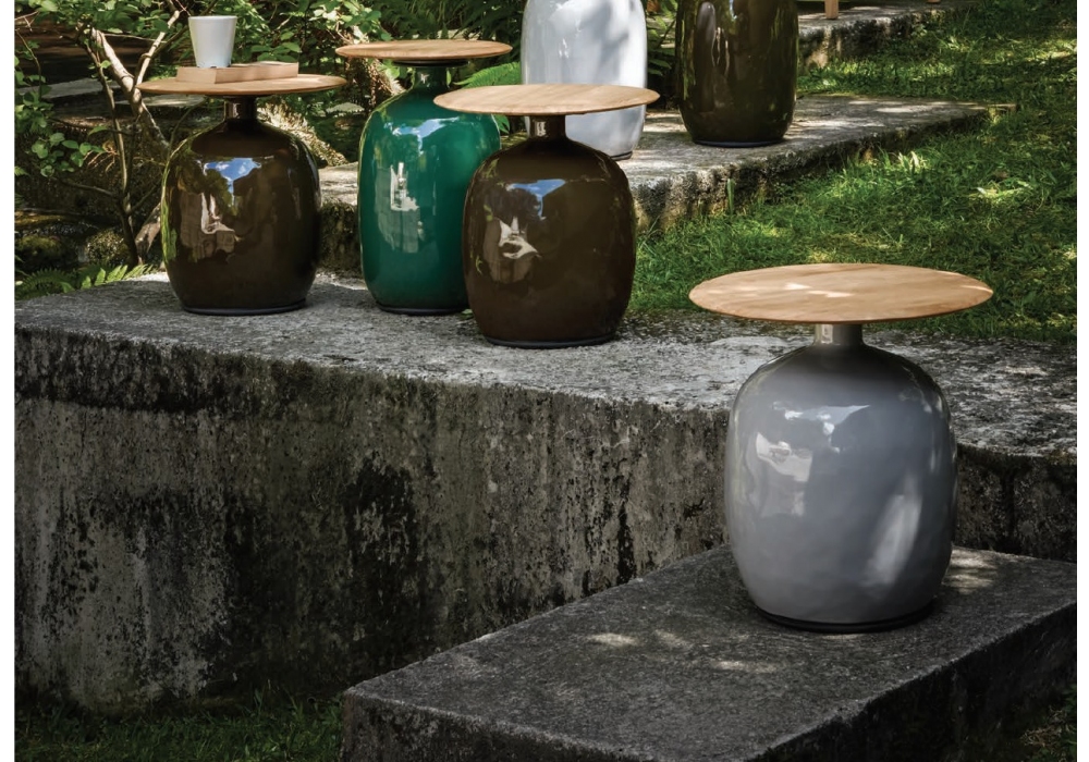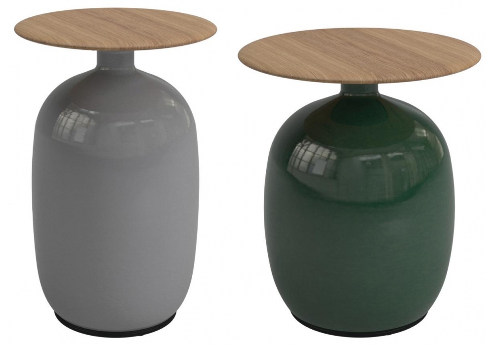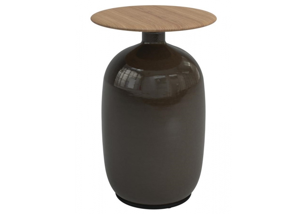 Blow conçue par Henrik Pedersen pour Gloster est une table d'appoint avec plateau en teck et base en céramique émaillée.