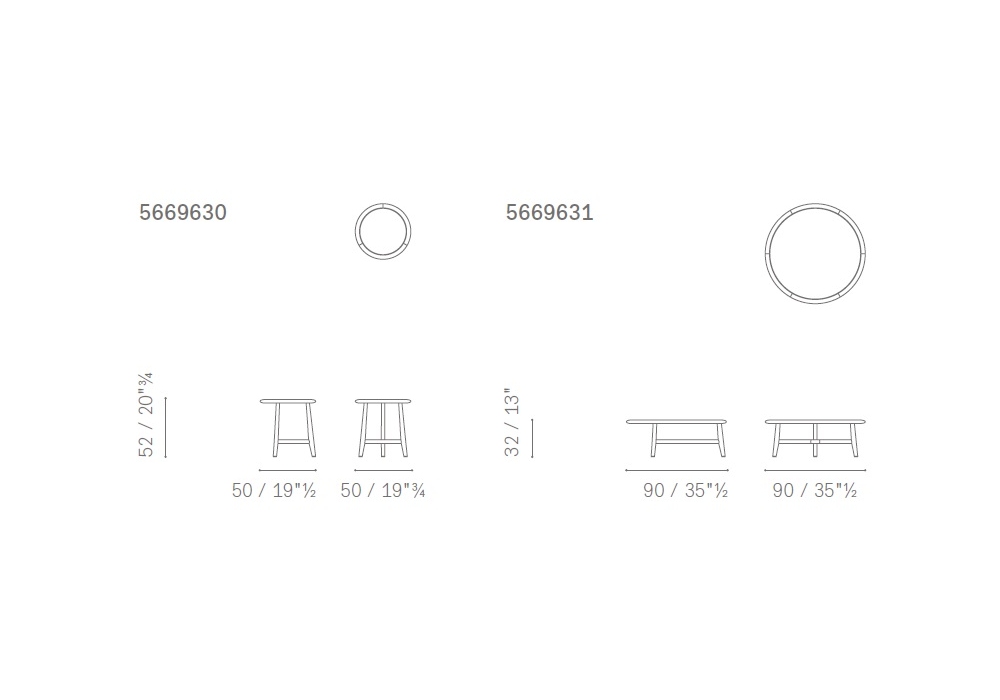 | Dimensions | Ø 50 x H 52 cm; Ø 90 x H 32 cm. |