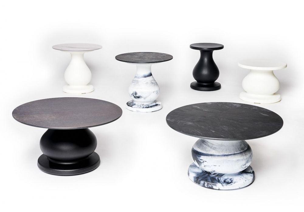 Ottocento Mini conçue par Paola Navone est une table basse aux lignes et à l'élégance des colonnes néoclassiques, dans une version mini. Disponible en deux tailles différentes et avec l'ajout d'un plateau élégant inspiré des nuances naturelles du marbre et du bois