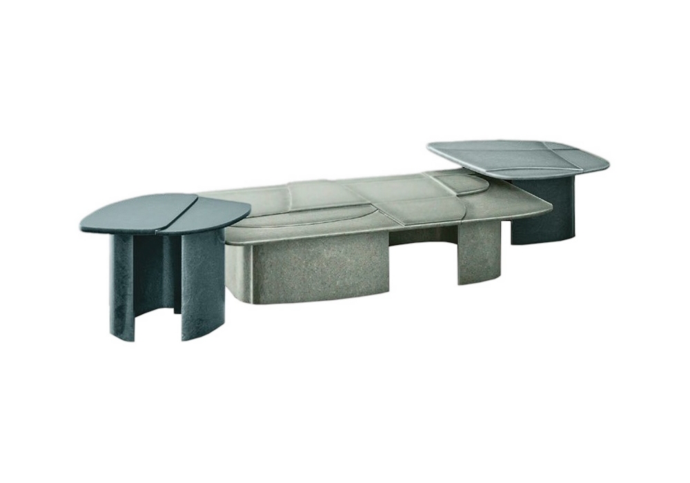 Keramikè conçue par Baxter P. est une table basse entièrement réalisée en céramique émaillée brillante. Disponible en quatre tons pour les coloris: Avion, Prune, Sucre et Vert. Les combinaisons de tons et de dimensions ne sont pas modifiables.