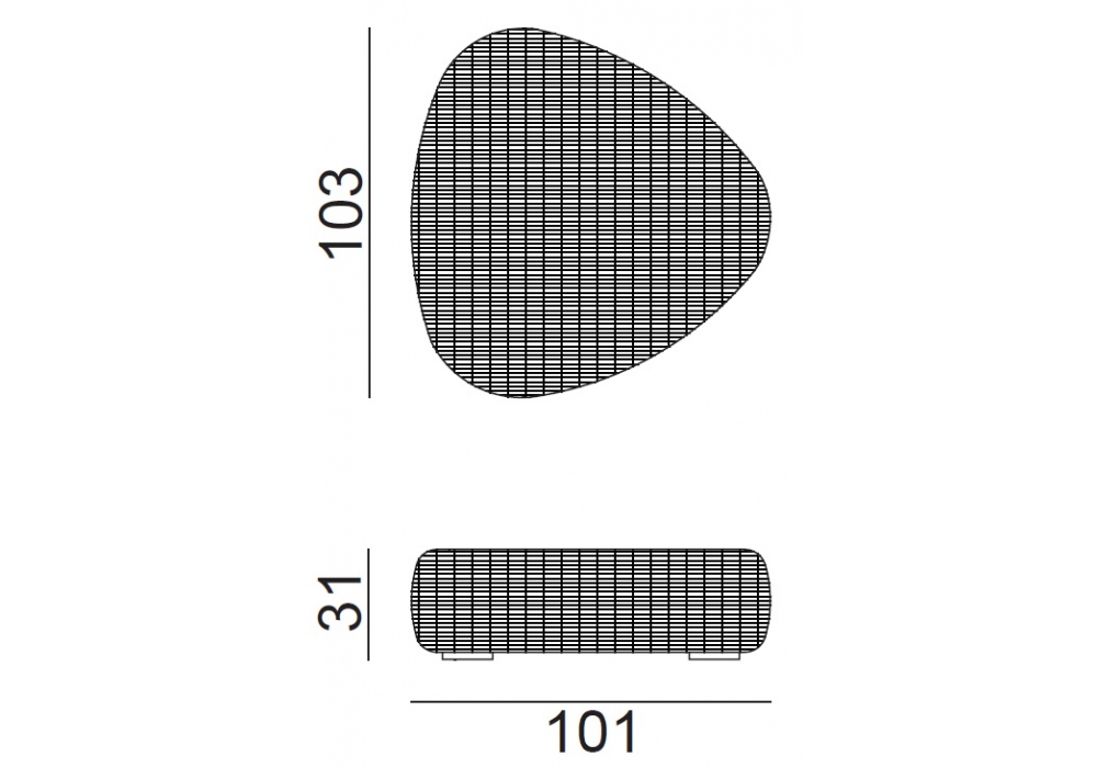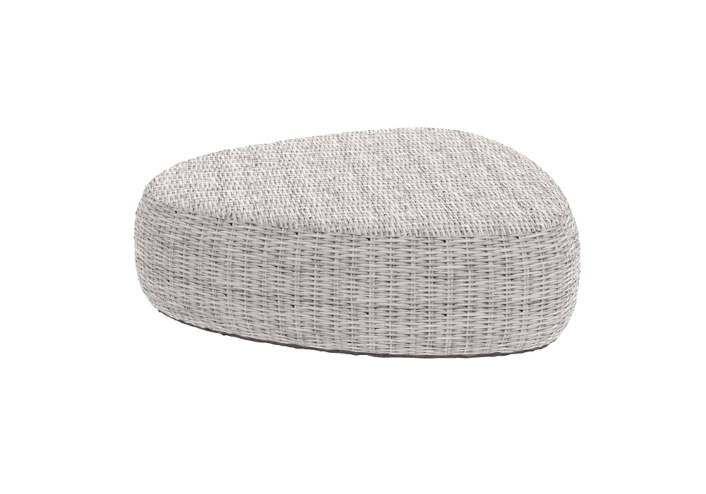 Panda conçue par Paola Navone pour Gervasoni est une table basse / pouf réalisée avec une structure en aluminium tressée à la main en résine Panda blanc / gris chiné et des pieds en aluminium.
