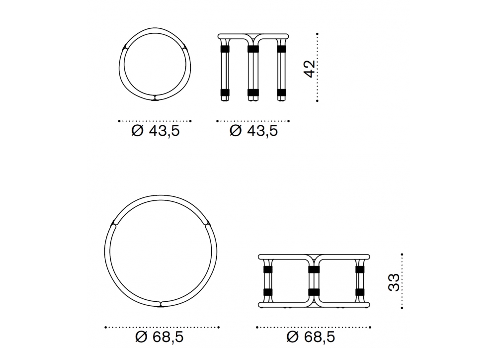 | Dimensions | Ø 68,5 x H 33 cm; Ø 43,5 x H 42 cm. |