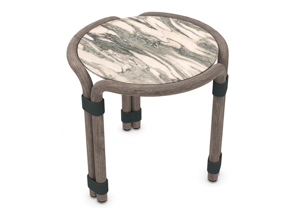 Rotin conçue par Zanellato/Bortotto pour Ethimo est une table basse avec structure en bois de teck et plateau en marbre. Rotin est disponible en différentes finitions et tailles.