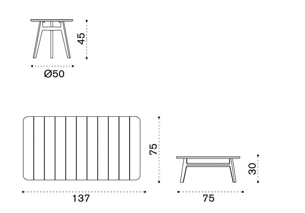 | Dimensions | Ø 50 x H 45 cm; 137x 75 x H 30 cm. |