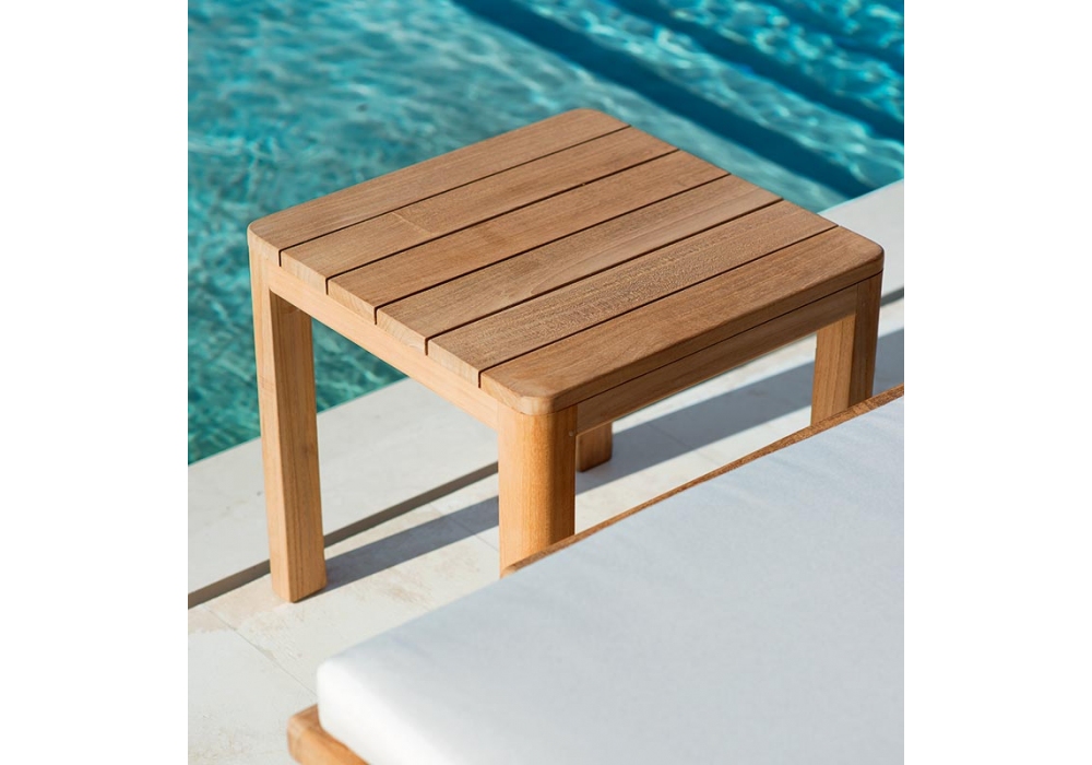 Clay produite et signée par Ethimo est une table basse entièrement structurée en teck naturel et décapé.