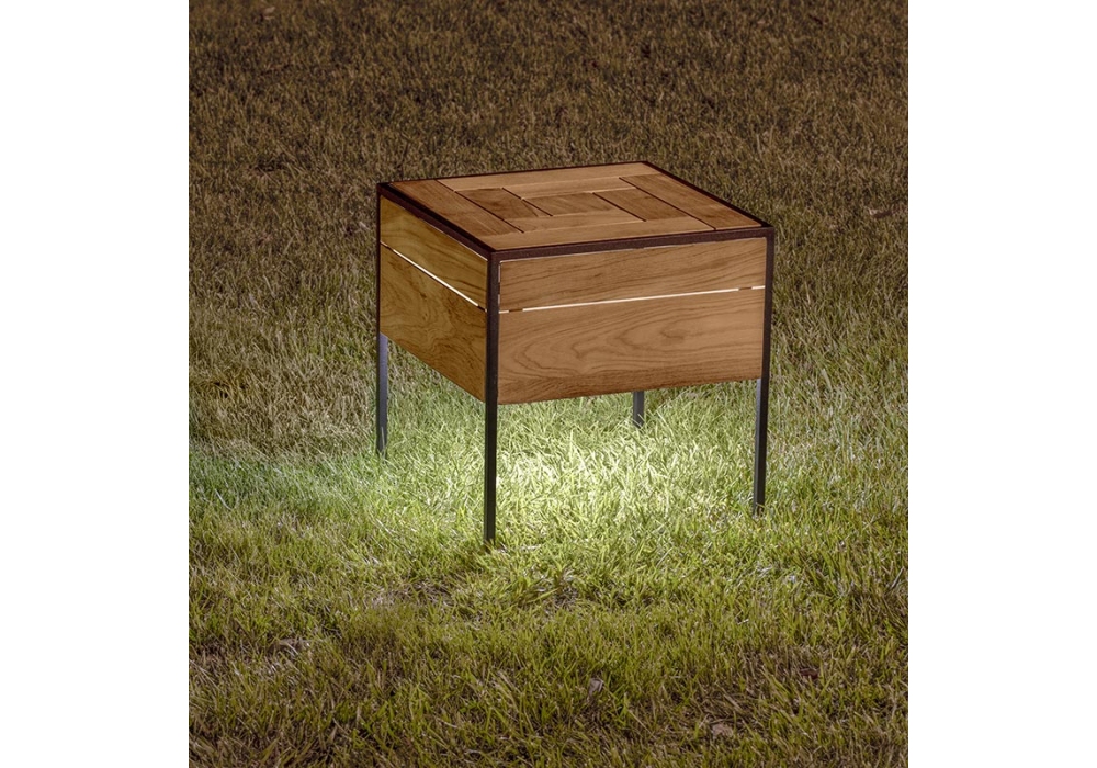 Tetris conçue par Marc Sadler pour Ethimo est une table basse lumineuse et rechargeable de forme quadrangulaire. Le plateau est en teck marqueté avec une structure en aluminium peint. Tetris est disponible en différentes finitions.