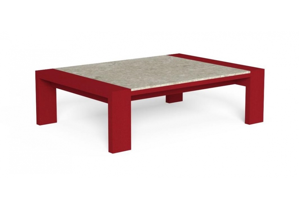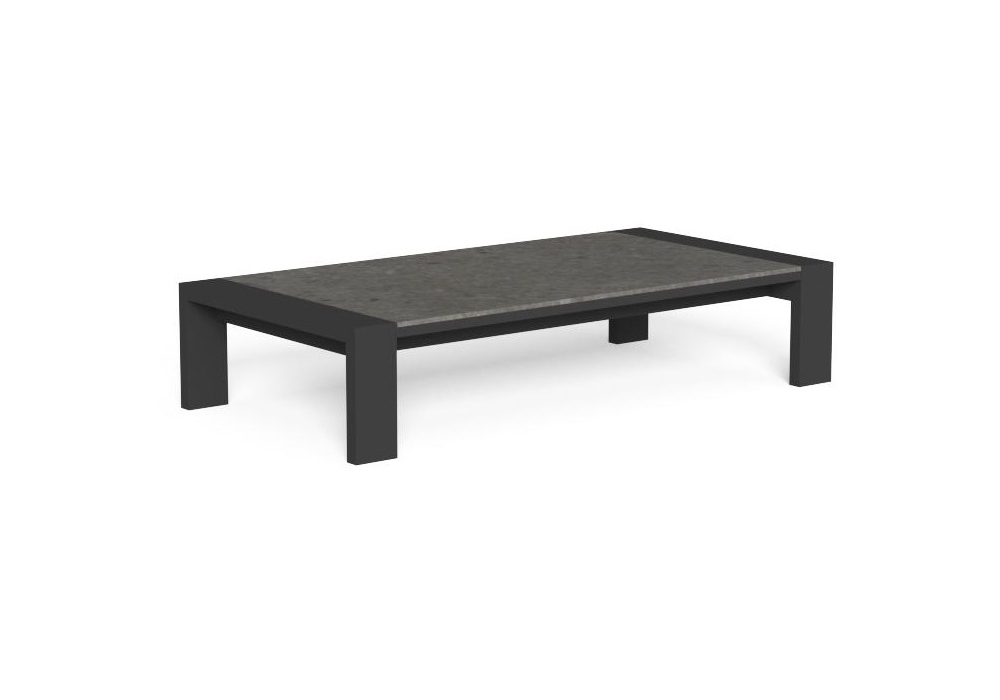 Argo Alu conçue par Ludovica + Roberto Palomba pour Talenti est une collection de tables basses d'extérieur composée d'une base en aluminium et d'un plateau en grès.