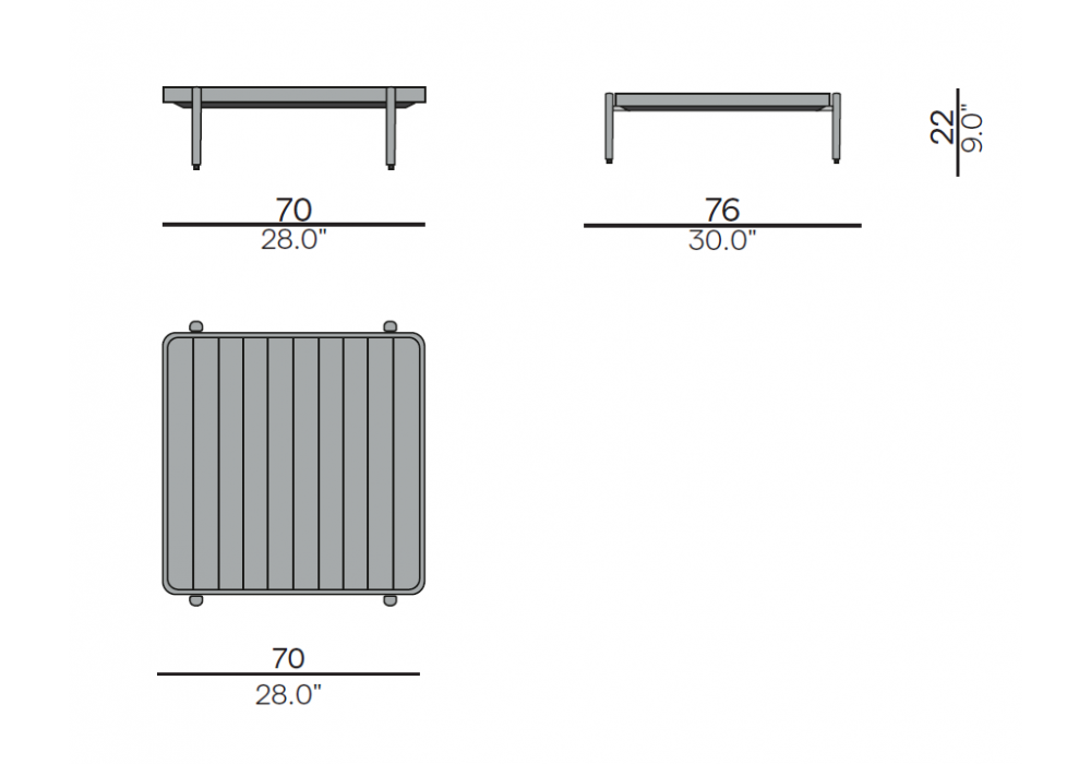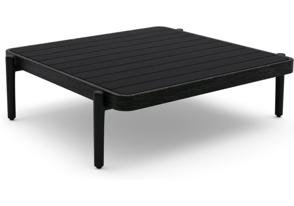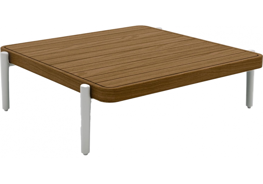 Flows conçue par Metrica Design Studio pour Manutti est une table basse avec structure en aluminium et plateau en teck en différentes finitions.