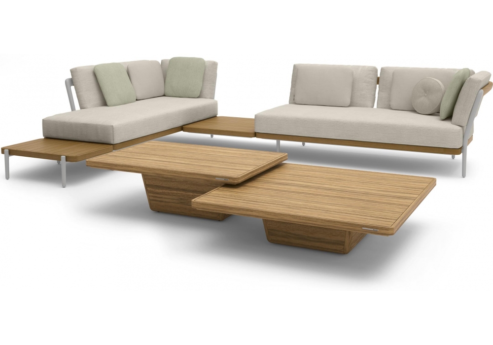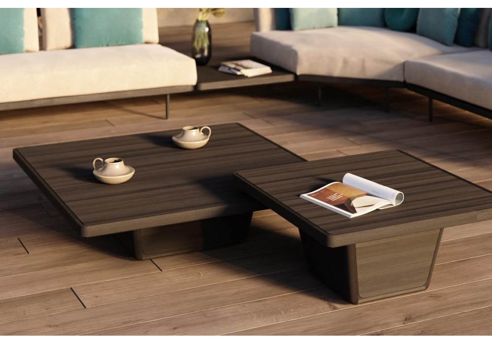 Cobi conçue par Matthew Townsend pour Manutti est une table basse avec structure et plateau en teck en différentes finitions. Disponible en différentes tailles.