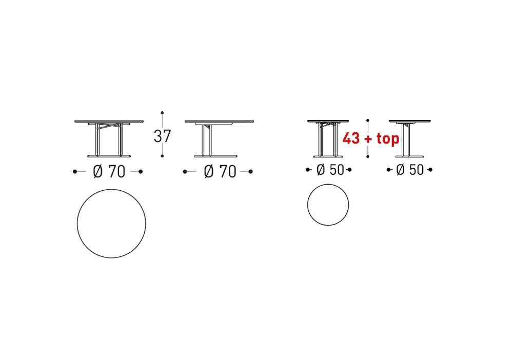 | Dimensions | - Ø 50 x H 45 cm; - Ø 70 x H 37 cm. |