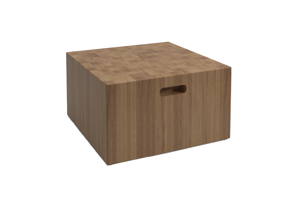 Block conçue par Henrik Pedersen pour Gloster est une table basse d'extérieur avec structure en teck. Disponible en deux tailles.