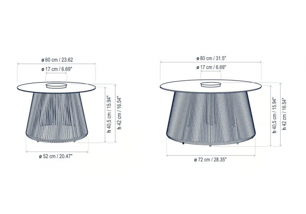 | Dimensions | Ø 52 x H 42 cm; Ø 72 x H 42 cm. |
